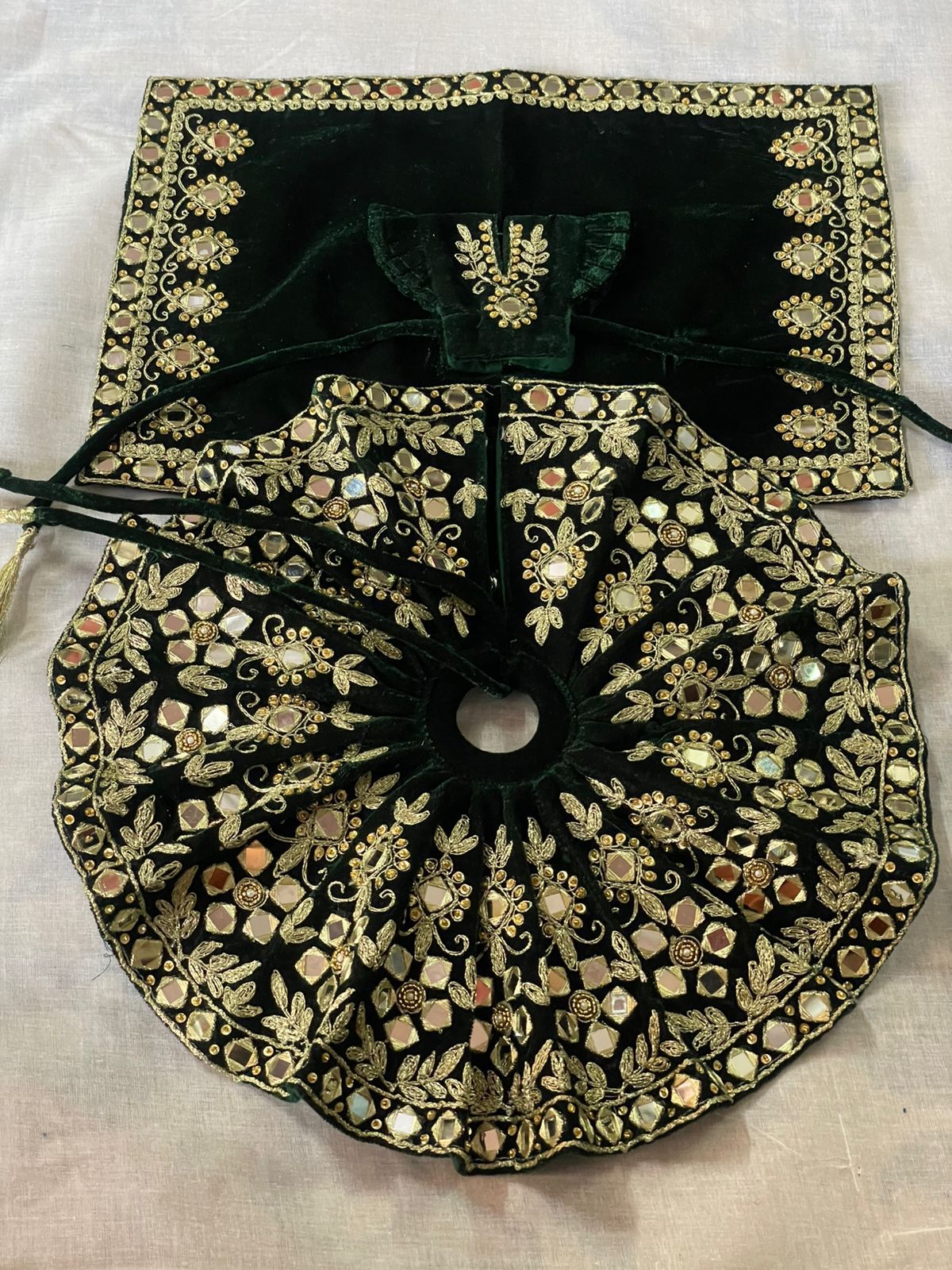 Dark green Color mirror work velvet dress for laddu gopal ji