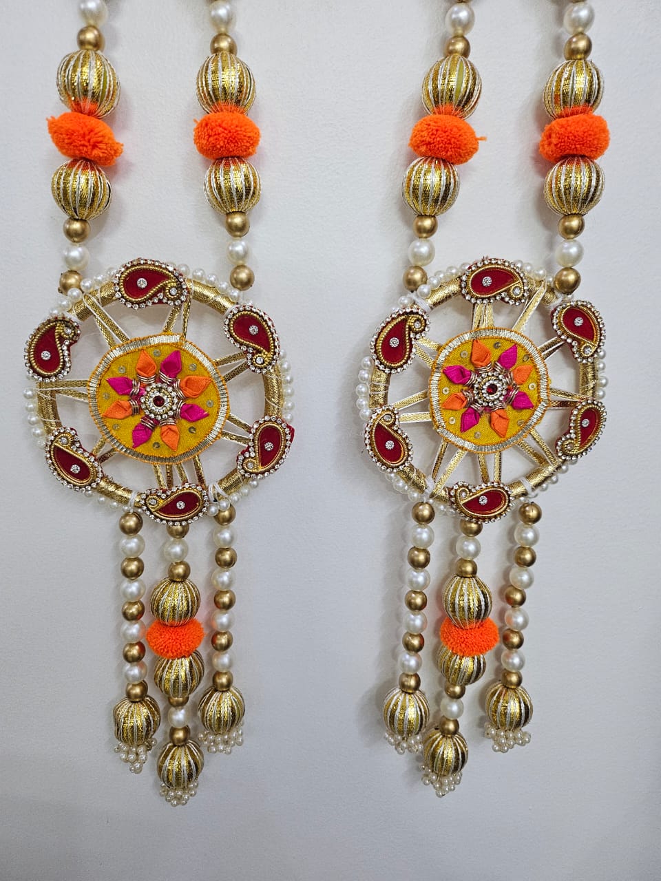 Bring festive vibes to your home with these vibrant orange and gold door hangings ✨🌼 Embellished with golden beads, pom-poms, pearls, and intricate center designs, they add a touch of traditional elegance and prosperity to your space. Perfect for Diwali, weddings, and home décor — handcrafted by Shringar Dil Se. 🪔💛- Product Code: SD-HDH-027
